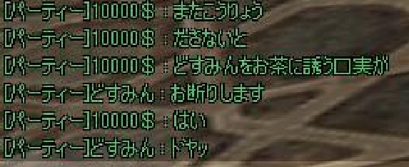 これか~ら~もどうぞよろしくねっ☆ こんなわたぁしだ~け~どぉわら~って~ゆ~るしてねっ☆ ずっと~~たいせつにし~~て~~ね☆ミミミ えいきゅうほしょうのわたしだ~から~☆ https://www.youtube.com/watch?v=f9w91dS0Umk 会いたくて会えなくて震えてるらしい$さんです。 震えていたのは会えないからではなく、(1)で寝不足だからなんですけど。 いつだったかやった、下記の語群から( )に適切な語句を当てはめて読め!!みたいなw 今回、答え合わせはありませんので、皆さんのご想像にお任せしますねwww ~~~~~~~~~~~~語句~~~~~~ (あ)AE強化保存ストーン発掘 (い)トリセツ (う)仕事 (え)経験値 (お)ユーチューブ (か)AE強化保存ストーン発掘 (き)エルス金庫前 (く)カトちゃん大好き (け)ギルチャ (こ)牛乳 (さ)AE強化保存ストーン発掘 (し)朝までチャット三昧 (す)愛 (せ)お断りします (そ)喜んで ~~~~~~~~~~~~ 今日もSS行きましょうか。 どすみんに5Fボスを手伝ってもらったときの話なんですが、ドロップをランダムにしたところ、レア武器やらアクセやら、ネームドが落とす箱開けるアレとか、ほとんど俺にこなくて不運だったという話。なんとなくいい雰囲気だったので・・・ と、前回、次回予告に書いた事は、別に適当に書いたわけではなく、その予定があったという事!!!! この後どうなるかわかります? [パーティー]どすみん : (2) これだけは回答を載せておきましょうか。 せっかくSSもあることですし!!!! おいwwwwwwwwww あれですね、まだまだ(3)が足りないっていう。 そんなわけで、その後は・・・ 俺は一生(4)やってろって事ですね。 あれ? 冒頭文書いてるうちに時間がなくなっちゃったwwwwwwwwwwwwwwwwwww 終わり |