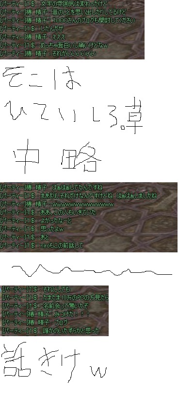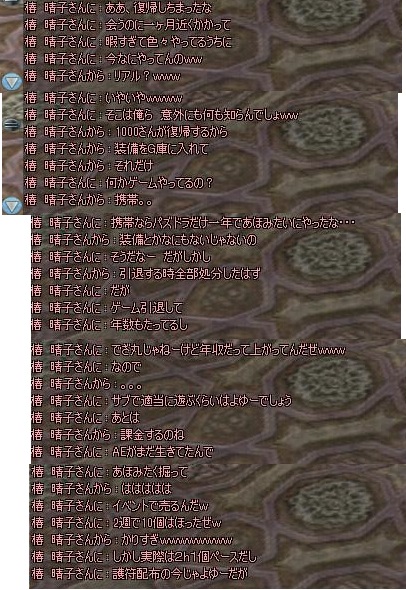 SSを整理してみましたが、やはり量が膨大で、とても1つの記事にはまとめきれないので、まずは晴子のメインパートからにします。そしてここからが、このブログの最終話シリーズの始まりです。 最終話を始める前に、皆様に伝えておきたいことがあります。 このブログ全体(再開後)の趣旨。 ・ロハンを引退したプレイヤーが数年後に見て、ロハンを懐かしむのに役立ててほしい。 ・私の知り合いが見たときには、さらに深く思い出せるような内容にしたい。 そしてこの記事は、上の2つに加えて、私達は後々こんなことしたんだよー。というメッセージであり、特に元Ever Freeの方や晴子を知っている方向けの内容になっています。 さて、前々回エンディングの条件の1つに Ever FreeⅡのギルド金庫にできる限りのボスアクセを納めてSSを撮る。 と書きましたが、正確にはそれをすべて’’これからのドロップで’’という条件もつけての晴子への提案でした。それに対する答えですが、イエスでもノーでもなかったんですよ。 私 「~~でエンディング!というのはどうだろう?」 晴子「ちょっとエンシェ石はめてくる」 お前はねらーかwwwwwwwwww という事で、私達が何をしたのか、そしてEver FreeⅡのギルド金庫に関するエンディングの条件は満たせるのか?その辺りの点に注目しつつ、私と晴子の再会後の活動をSSでできる限り再現しますので、ご覧ください。 ・・・やってみましたが、これはあまりにも長すぎて、編集が全部終わってから更新すると何日も開いてしまいそう(23時過ぎに編集を始めたのに、3時になっても数%しか進んでませんwwwwwwwwwwwww)なので、少しずつ追記していく事にしますwwwwwwwwwwwwwwwwww |