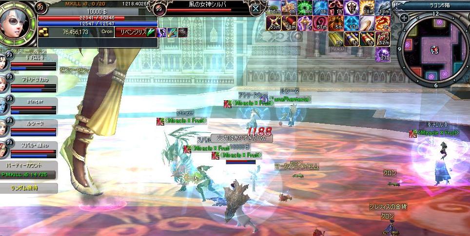 おれは途中で1回死にました。その煽りで死者が数名出るも、全滅はしませんでした。ショックをもらってからアイコンが出る=スタンする間約15秒。その間バグで何もできずにおろおろが2回ほどあり、さすがにシルバ様という感じでした。ドロップ何もなかったちゃんw