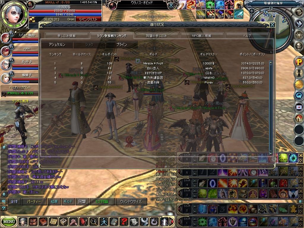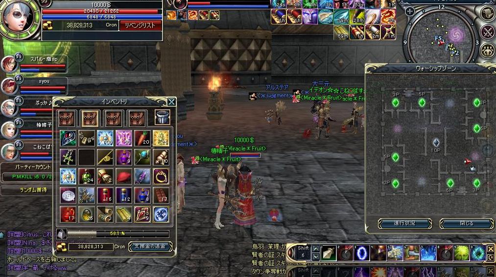 少しずれますが、負けても楽しく感じ、相手を認め その勝利を喜べるギルドになりたいかなww タウンで負けるたびに誰か噛む用のハンカチよこせwww って言ってますけどねw それと・・・ いつも真剣に読んでよ!! 特に恋愛講座とかスカートとか・・・w |
