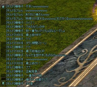 今後、鯖統合とかしてわけわからなくなったら 話し合いでもしたほうが良いね もしも、SSやVIPより大きいG(知らんから)がいるなら、手っ取り早く合併でもするか 色々考えないとだしね。 それ以前に・・・狩場は・・・? どうなんでしょうかね? ひでおさん