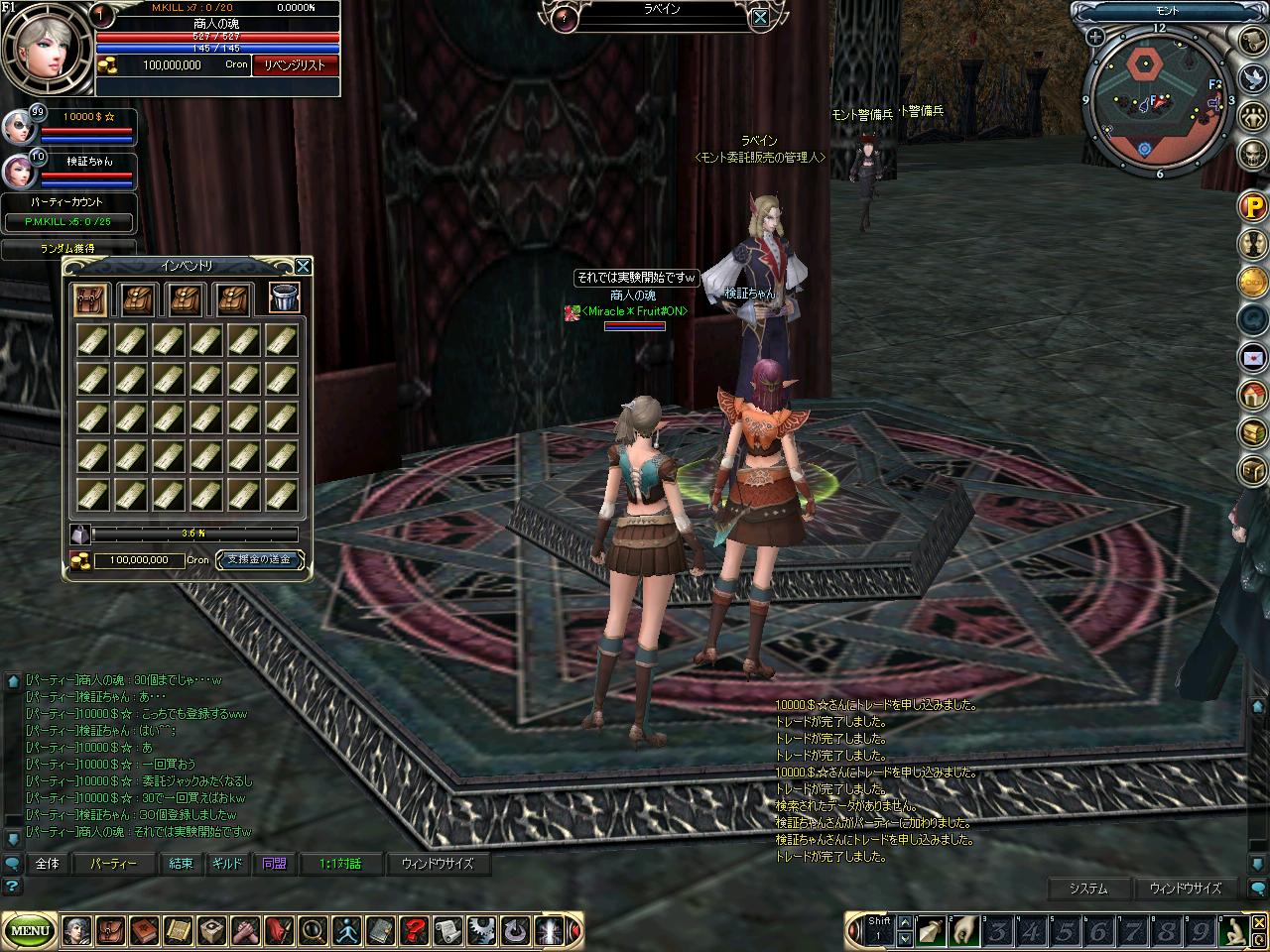 どうやってばれないように新キャラと新ブログを演じようかと考えている$さんです。 笑えない冗談はさておき、いよいよ発表となりました。 でも、あまり期待しないで下さい。 引っ張った割には・・・ って感じになると思いますwwww という事で、かなり微妙な結果になってます。 委託販売で商人の魂を使った結果 ○=成功 ×=失敗 10% 20% 30% 50% 01 × ○ × × 02 × × × × 03 × × ○ × 04 × × × × 05 × × × × 06 ○ × × × 07 × × × × 08 × × ○ × 09 × ○ × × 10 × × × × 11 × ○ × × 12 × × × × 13 ○ ○ × × 14 ○ × × × 15 × ○ × × 16 × × × × 17 × ○ × × 18 × × × × 19 × × × × 20 × × × × 21 ○ × × × 22 ○ × × × 23 ○ × × × 24 × × × × 25 ○ × × × 26 × ○ × × 27 × × ○ × 28 × × × × 29 ○ ○ ○ × 30 × × × × 31 ○ × × × 32 × × × × 33 × × × × 34 × × × × 35 × × × × 36 ○ × × × 37 ○ ○ × × 38 ○ × × × 39 × ○ × × 40 ○ × × × 41 × × × × 42 × × × × 43 × × × × 44 × × × × 45 × × × × 46 ○ × × × 47 × × × × 48 × × × ○ 49 ○ × × ○ 50 × × ○ × 51 × × × × 52 × ○ ○ × 53 × × ○ × 54 × × × × 55 × ○ × × 56 ○ × × × 57 × × × × 58 × × × × 59 ○ × × × 60 × ○ × × 61 × × × ○ 62 × ○ × × 63 × ○ × × 64 × × × × 65 × ○ × × 66 × × × × 67 × × × × 68 × ○ × × 69 × × × × 70 × ○ × × 71 × × × ○ 72 × × × × 73 × × × × 74 × × × × 75 × × × × 76 ○ × × × 77 × × × × 78 × × ○ × 79 × ○ × × 80 ○ × ○ ○ 81 × × × × 82 × × × × 83 × × ○ × 84 × × × × 85 × × ○ × 86 × × × × 87 × × × × 88 × × × × 89 ○ × × × 90 × × × × 91 × × × × 92 × × × × 93 ○ × ○ × 94 × × × × 95 × × × × 96 × ○ × × 97 × × × × 98 × × × × 99 × × × × 100 × × × × 販売代金 1M×100個 登録料金 5万×100個=5M 商人の魂10% 21/100 値引き2.1M 赤字2.9M 連続ヒット2打席 3打席 3打席 連続凡退7 8 16 好調期(10打席中) 5安打 4安打 商人の魂20% 20/100 値引き4M 赤字1M 連続ツーベース2打席 連続凡退8 12 16 好調期(10打席中) 5安打2回 商人の魂30% 12/100 値引き3.6M 赤字1.4M 連続スリーベース2打席 連続凡退18 20 24 好調期(10打席中) 4安打 3安打 商人の魂50% 5/100 値引き2.5M 赤字2.5M 連続ホームラン2打席 連続三振11 20 47 好調期(10打席中) 2安打 FAで取得するなら20%選手です。パワーがある割にはコンパクトなスイングと選球眼に定評がry 結論:どれも赤字 20%の時調子良すぎたのかな?ww10%とほぼ変わらないくらい成功しています。いまいちパッとしませんが、どれも見せ場はあります。しかしはまりも深いwww 50%を検証している時は夢かと思いました。開幕47連敗とか・・・w というわけで以前報告したMFギャンブラー部最強ですねwwwwwwwwww(詳細は過去記事のどっかにあるよw) あとはでざいあ守備走塁コーチがこの数値を元に色々と書いてくれるそうなので、皆さんそちらに期待しましょう。 最後になりますが、この企画にご協力下さったたくさんの方々、本当にありがとうございました。 これからも健全な商人の魂生活をお送り下さいませませww おまけ 収録時の様子をSSにしてあるので暇な方はどうぞ。 |