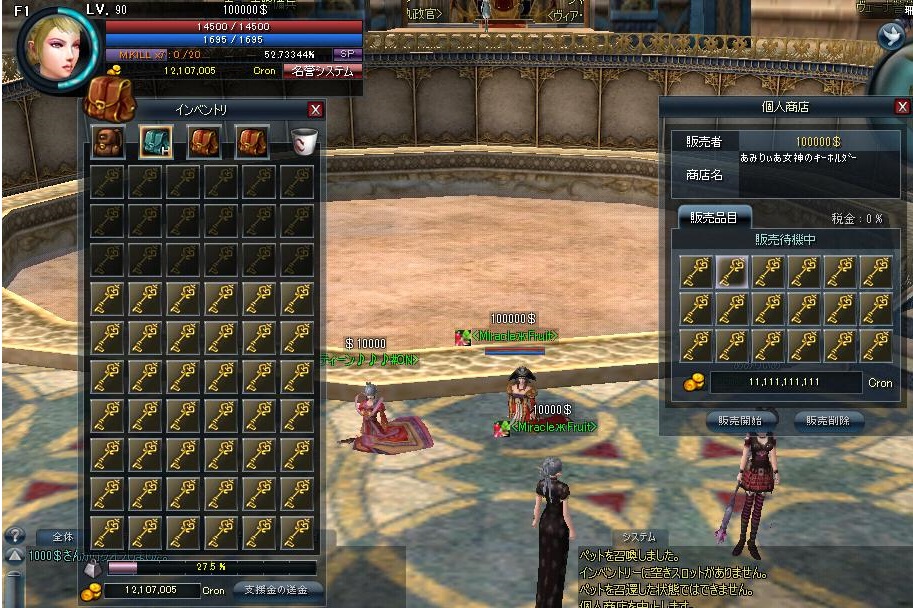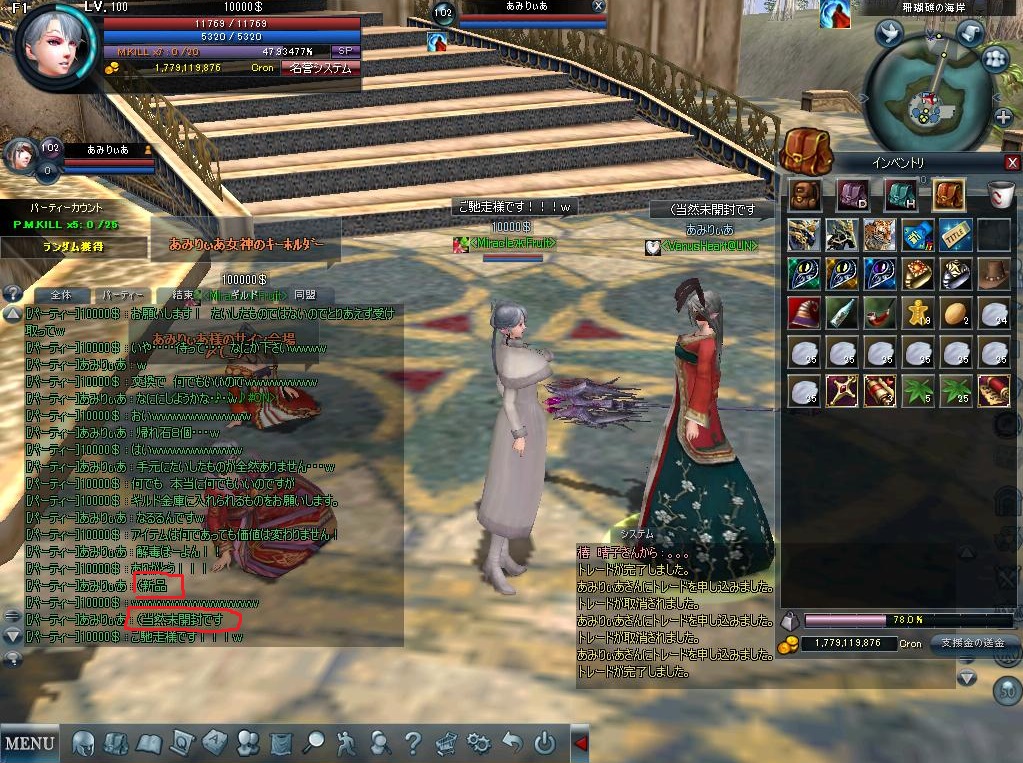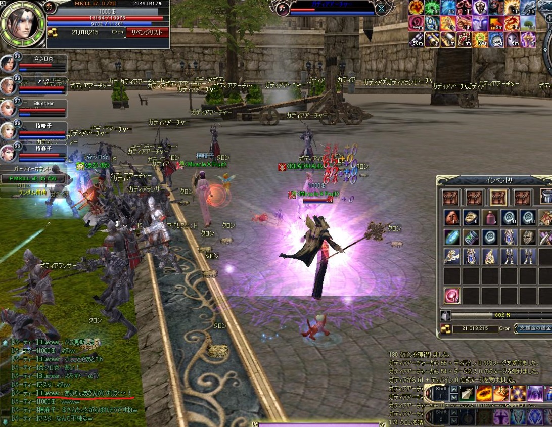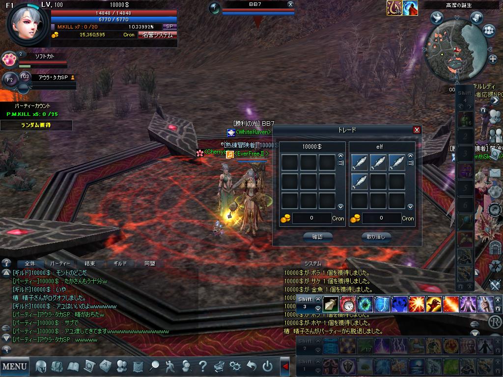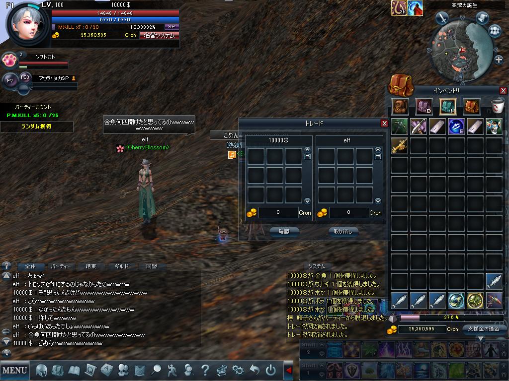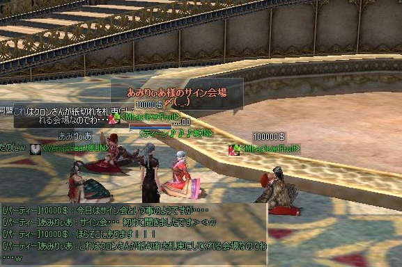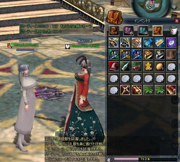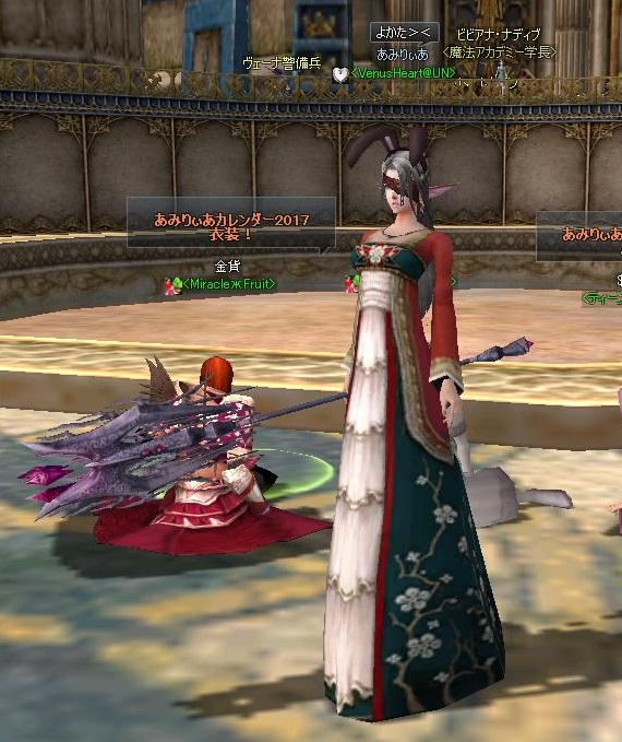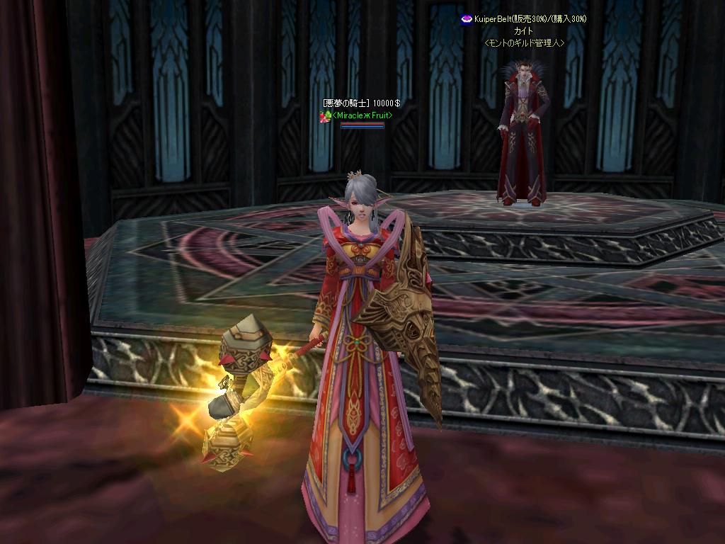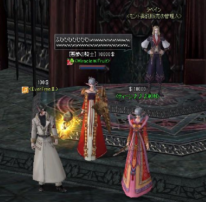この記事は、MiracleжFruitのメンバーだった方はもちろん、私を知る方、あるいはこのブログに来た事がある方には特に懐かしんでいただけるような内容にしたいです。 どうか、そのような方々がこの記事にたどり着くことができますように。という願いを込めて、本編に入りたいと思います。 MiracleжFruitとしてのエンディング条件 Ever FreeⅡのギルド金庫にボスアクセを納めるツアー の道中で得た武器防具をエサにアユを釣り、ボスから出たスキル石と合わせてギルドを作成。ギルド名をMiracleжFruit(ミラクルフルーツ)とし、エバフリ2と同盟。タウンにも登録してギルドスローガンで何かを残す事。 元連合1サーバーの皆様覚えておいででしょうか? あるいは2010年のサーバー統合以前に連合2サーバー、シルバサーバーだった方、それ以降にロハンを始めた方はお初にお目にかかります。 あのまぞーーーいギルマスクエを再び消化した上で、私がギルマスを務めていたお騒がせギルド MiracleжFruit が復活しました。・・・え?古くから連合1にいるけど、そんなギルド知らないって?・・・・すぐに消えちゃいましたからwwwwwwww という事で、ギルド作成が完了しています。 まずはその辺りのいきさつからご紹介しましょう。 条件の都合上、ボスアクセ獲得ツアーでスキル石と釣り餌が集まった後でなければ、ギルド作成は進められないので、ギルマス予定の10000$はEver FreeⅡに所属して晴子と活動した。 いつものようにモントギルド金庫前にいると、晴子が「たかさんいるよ」と言う。 たかさんといえば、EFメンバー→フェニ(GM)→MFメンバーであり、私や晴子と同じギルドの出身になる。(まあ、ほんの少ししかEFにいなかった私がEF出身というと、ちょっと違和感有りかもしれない) 私個人との付き合いにおいては、互いのファーストキャラの3F時代くらいからのフレンドという仲。そういえば、スカウトだった私はとにかくクイックネスが7の人にフレンドを申し込みまくっていたバフ乞食でしたwwwww ~~~ちなみに私のキャラクター育成は~~~ 2006~7年 → 2009年 → 2010年 メダル(91)→100$(95)→1000$(99)→10000$(99)・・・というような順序だったかな。大まかにですが。 ~~~~~~~~~~~~~~~~~~~~~ ここからはSSで。 3人で釣りを始めるわけなんですが・・・ たかさんが言っているのは見つからなかった釣り竿があったという話。で、チアフィッシングは向こうのギルマスが気を利かせていれたくれたみたいですが、晴子もすぐ入れてくれました。まあ体感微妙なんですがw それとは別の問題で、このSSで私が重大なミスをしているのが晒されている事はお気づきでしょうか? この後、私は「もう晴子が持っているやつ(ボスアクセ)使おうか。」と、超絶紛らわしい発言をします。アユを釣っているんだから、この場合でボスアクセと受け取ってもらえるわけはないでしょう。それを聞いた晴子は即座にサブのアユを取りに行きます。 このSSの真ん中くらいで、アユはいいのよwwwwって言ってますが、そういう意味です。しかし一歩遅くて間に合いませんでした。アユを渡してくる晴子に、ギルチャで言おうとした事を言わなかった。 これが私のミスその2です。 で、アユをトレードできる数いっぱいに埋めて渡してくる晴子なんですが・・・釣り餌を買いすぎてインベントリがいっぱいだったので、確定した瞬間トレードが取り消されてしまいます。 なので、バインドで魚を捨てたんですが、どうやら誰かが猿かフェアリーを出していたようで、何匹か吸い込まれました。LV1の魚なので、そういう意味での痛手はないですが、マナーの問題でミスその3というところです。 とりあえず端っこに移動して魚とか餌のアカデミーワンドを捨てていると、すかさず突っ込みが入ります。 ここで解説(言い訳)を入れますが、私が言っている「なかったんだもん」は「(持って)なかった」という意味です。もはや通じる状況ではありませんがwww トレードでアユを渡し終えた晴子が戻ってきます。 このSSでわかるように、タカさんからアユを提供してもらいました。 この後、タカさんからブログの完結作業を手伝いますという旨の郵便をもらいますが、実はこうして最終回に登場しただけで、手伝っていただいた。という風に思っています。その上キーアイテムのアユまでいただいたのですから、それで充分です。ありがとうございました。 それにしても・・・裏でこんな苦しいやりとりをしていたんですよ?wwwww せっかくなので、タカさんのハイライトというか、私が選ぶ名シーンを引っ張ってこようかなw ・・・・これかな! ギルメンロイアスさんが、スキル石をはめようと5連敗した流れからの話。 どちらかというと、クールなプレイスタイルでしたし、対人とかロハンの仕様系の会話が多かったイメージのあるタカさんでしたが、バラエティーも心得ていたのをちゃんと拾えていましたww で、問題はこっちですよwwww (なぜ釣り餌を買って釣っていたのか)言い訳しようにも話が長くなるし、タ