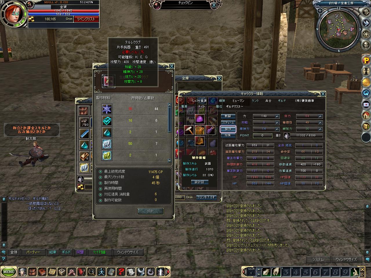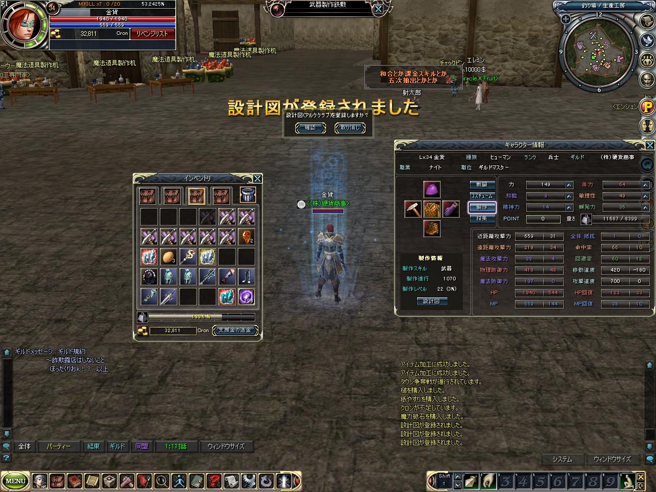 製作装備に注目です。武器の製作ハンマー永久を持っていないので回数製のハンマーを使っていました。